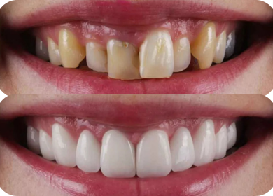 Ultra-thin porcelain or composite shells are bonded to the front of your teeth to correct chips, gaps, stains, or uneven shapes. Veneers deliver a flawless, celebrity-like smile with minimal tooth preparation.